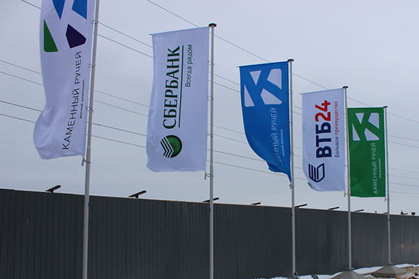Современное оборудование и квалифицированный персонал позволяют нам выпускать продукцию наивысшего качестваПечать флагов с логотипом на заказ